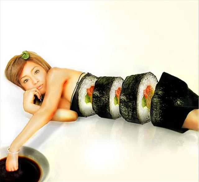 Японская кухня призвана не только восстановить силы и порадовать вкусовые рецепторы. Суши, сашими и роллы очень красивы и сами по себе, но на теле обнаженной девушки они выглядят вдвойне соблазнительно.