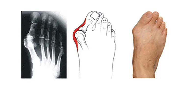 При вальгусном отклонении плюснефаланговый сустав искривляется и склоняется к наружной стороне стопы. Во время Hallux valgus на 1-ом плюснефаланговом суставе выпирает отечная и воспаленная головка плюсневой кости, которая не дает человеку носить красивую обувь.